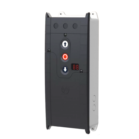 Coffret de commande TS 959 de la marque GFA Elektromaten. Avec commande intégrée : Ouverture – Arrêt – Fermeture.